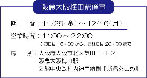11/29~12/16 阪急大阪梅田駅出張販売いたします
