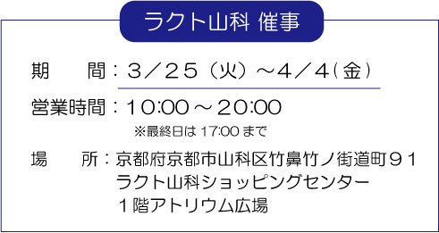3/25~4/4店外催事のお知らせ(ラクト山科)