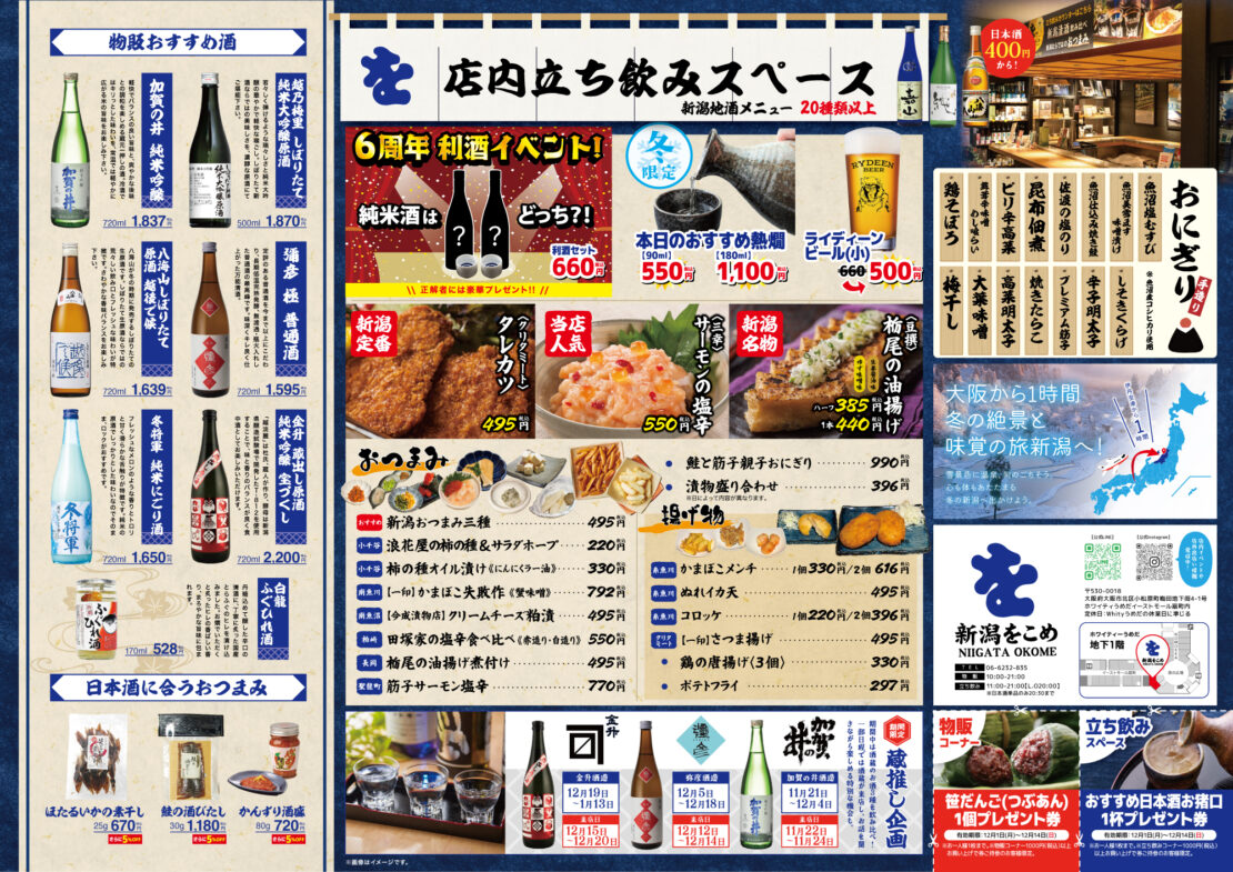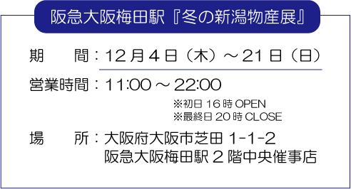 また、「12/4(木)~21(日)」『阪急大阪梅田駅』で「冬の新潟物産展」を行います!