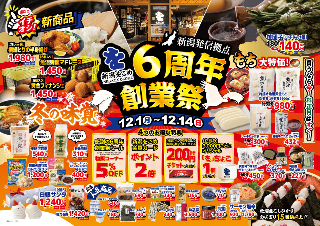 皆様のおかげで「新潟をこめ」は12/5(金)で「6周年」を迎えます!!