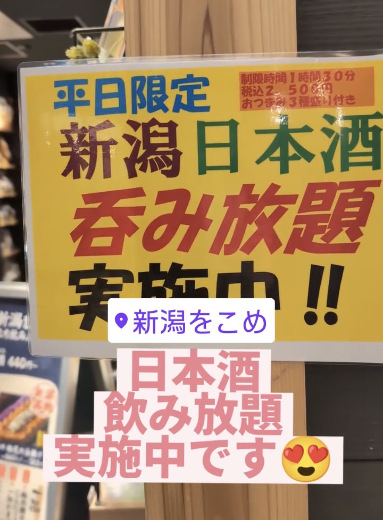 当店立飲みコーナーでは、「平日限定」で「日本酒飲み放題」を始めました。